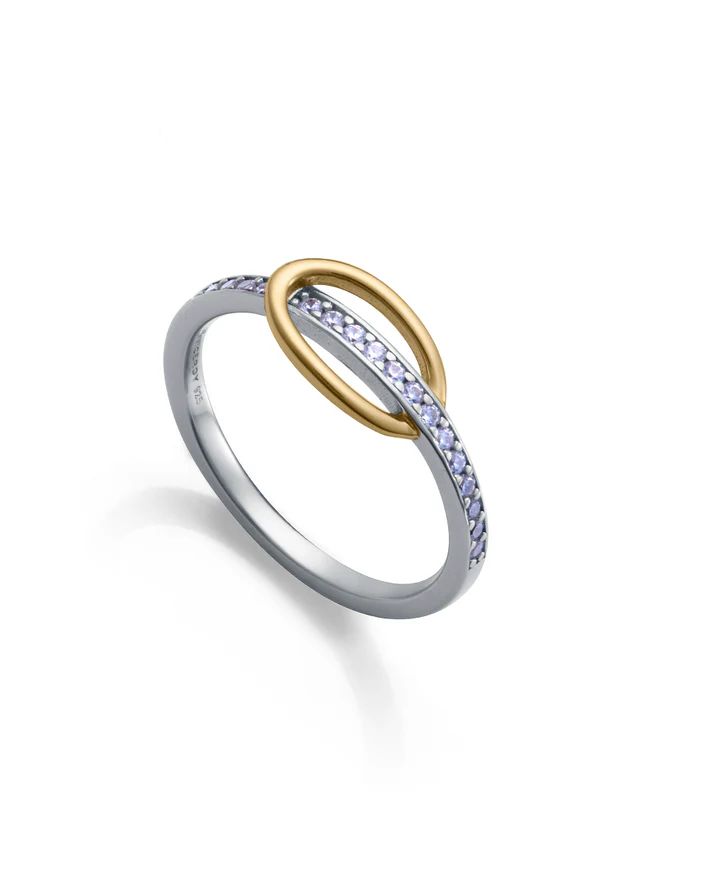Anillo Plata Bicolor Dorada Viceroy 9158A010-30 Doble Aro Entrelazados Circonitas