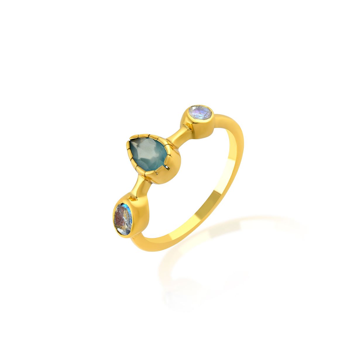 Anillo Plata Dorada ANM0181DOVA16 Triple Piedra Mineral