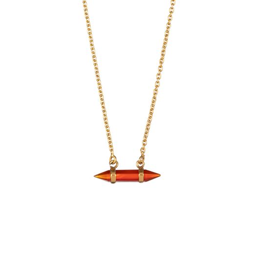 Colgante Plata Dorada 25x4mm COM0167DOCO Mineral Cornalina. Colgante fabricado en plata de ley 925 con baño de oro de 18kts. Diseño de mineral cornalina con forma de lápiz. Medida 25x4mm. Incluye cadena de 43+5cm, cierre mosquetón. Peso 4,70g. Certificado de autenticidad y garantía de calidad en los materiales de fabricación. Ref COM0167DOCO