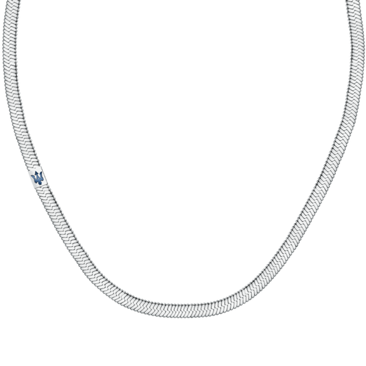 Collar Acero Maserati Hombre JM422AVD14 Tridente Maserati Azul. Collar fabricado en acero inoxidable. Diseño de tridente Maserati azul. Medida 55cm. Cierre joyería. Acabado en brillo. Certificado de autenticidad y garantía de calidad en los materiales de fabricación. Ref JM422AVD14