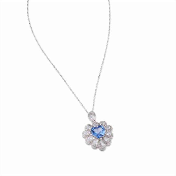 Collar Sovrani Plata 40+5cm J11152 Circonitas Con Piedra Aguamarina Corazón