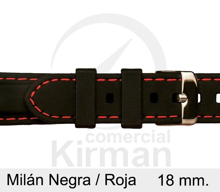 Correa Reloj Silicona 18x80/120mm 135150/18N-R Milán Negra/Roja Cierre Hebilla. Correa de reloj fabricada en silicona. Diseńo Milán negra/roja cierre de hebilla. Medida 18x80/120mm. Producto de excelente calidad, con garantía contrastada que asegura su fiabilidad y durabilidad. Ref 135150/18N-R