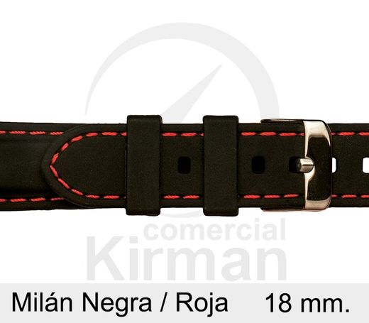 Correa Reloj Silicona 18x80/120mm 135150/18N-R Milán Negra/Roja Cierre Hebilla