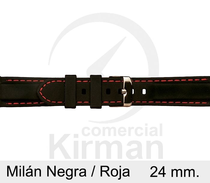 Correa Reloj Silicona 24x80/120mm 135150/24N-R Milán Negra/Roja Cierre Hebilla