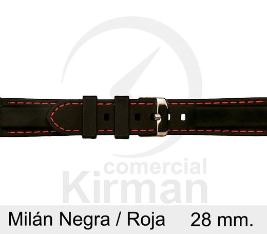 Correa Reloj Silicona 28x80/120mm 135150/28N-R Milán Negra/Roja Cierre Hebilla