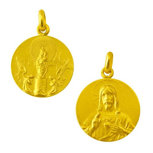 Escapulario Oro 18kts Virgen del Pilar / Sagrado Corazon 18mm ME1/16/49/18