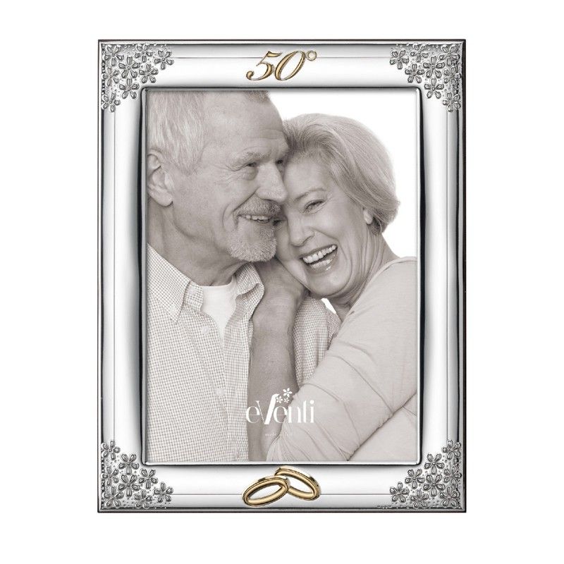 Jubilæumsfotoramme 9x13cm EV9250/9C Blomsteralliancer 50 år. Erindringsfotoramme med hjørner med blomster til 50 års bryllup. Erindringer om bryllupsdag. Mål 9x13 cm. Ref. EV9250/9C