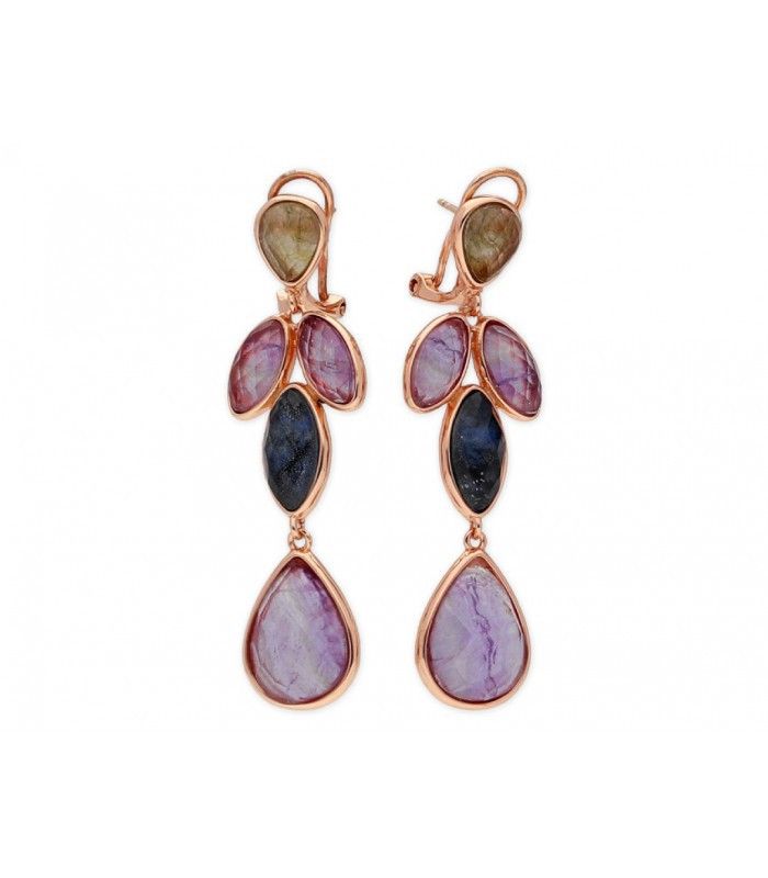 Liska gyldne sølv øreringe BE53342LBFLDM Labradorit Fluorit. Lange øreringe lavet af 925 sterling sølv med 18 karat guldbelægning. Design af naturlige labradorit- og fluoritsten. Nat Stones samling. Certifikat for ægthed og kvalitetsgaranti på fremstillingsmaterialer. Ref BE53342LBFLDM
