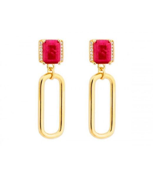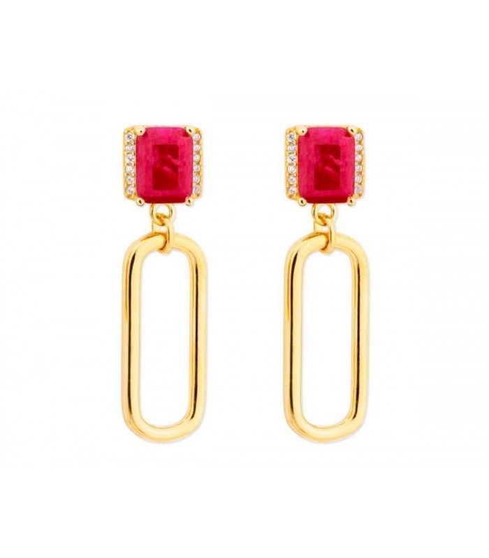 Liska gyldne sølv øreringe MED389A-RD røde sten zirkoner. Øreringe lavet af 925 sterling sølv med 18 karat guldbelægning. Vedhæng design med led og rød sten med zirkoner. MIDDELHAVS Samling. Certifikat for ægthed og kvalitetsgaranti på fremstillingsmaterialer. Ref. MED389A-RD