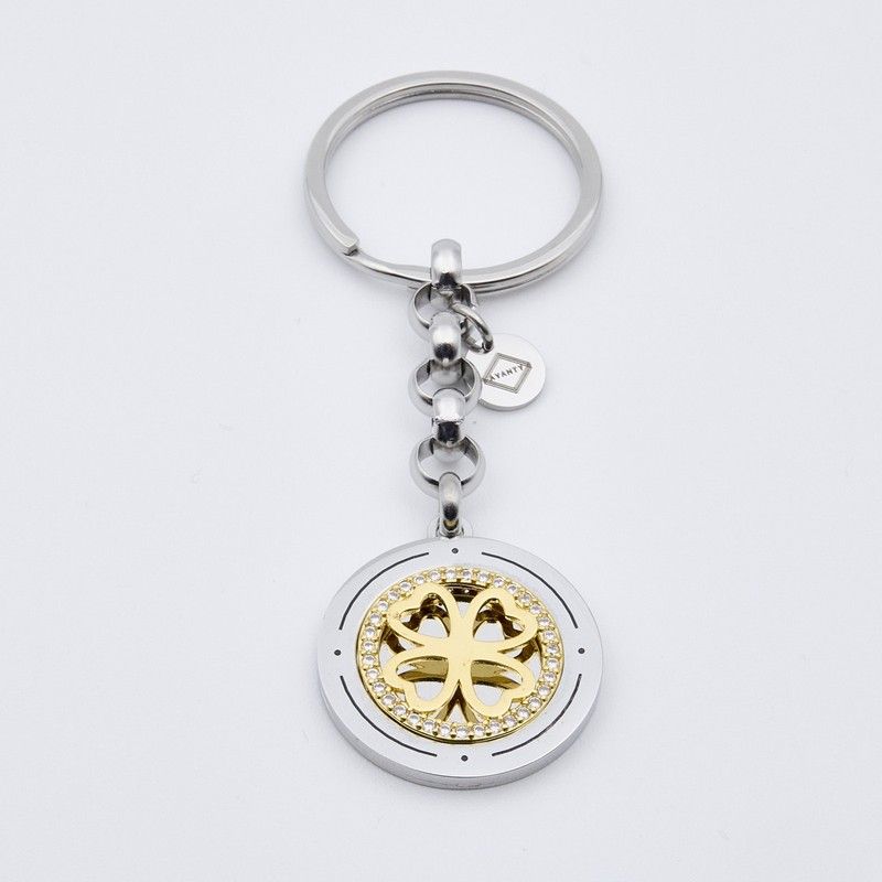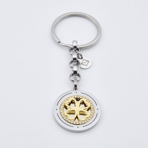 Llavero Acero Bicolor Dorado Sovrani AV0060 Trébol Strass Circonitas