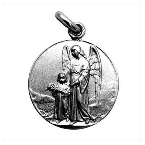 Medalla Plata Envejecida Angel De La Guarda 20mm MP1/1/14/20