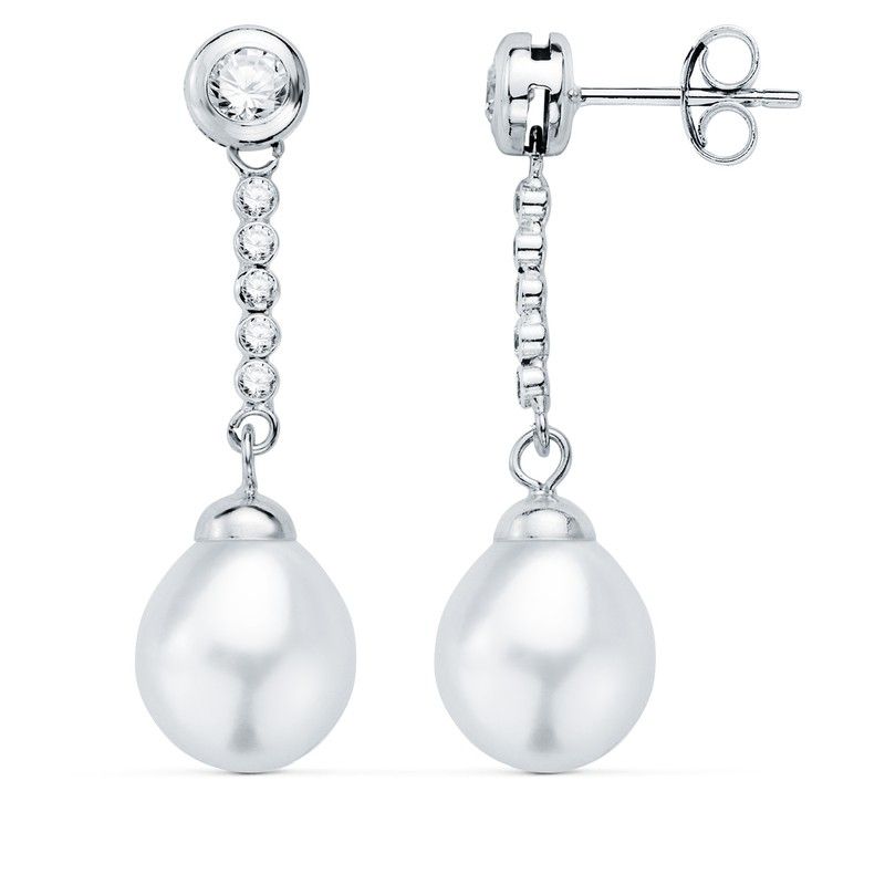Øreringe i 18 karat hvidguld 30x8 mm 21350 perle. Øreringe lavet af 18kt hvidguld. Perle og chaton med zirkoner. Tryklukning. Mål 30x8mm. Certifikat for ægthed og kvalitetsgaranti på fremstillingsmaterialer. Ref 21350