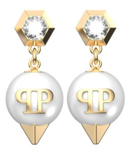 Pendientes Acero Dorado Mujer Philipp Plein PJ8EA13EU Colgante Perlas Logo PP