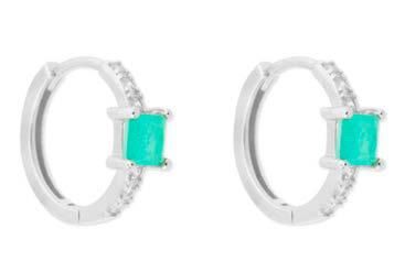 Pendientes Liska Plata MED390A-V Aro Circonita Cuadrada Verde