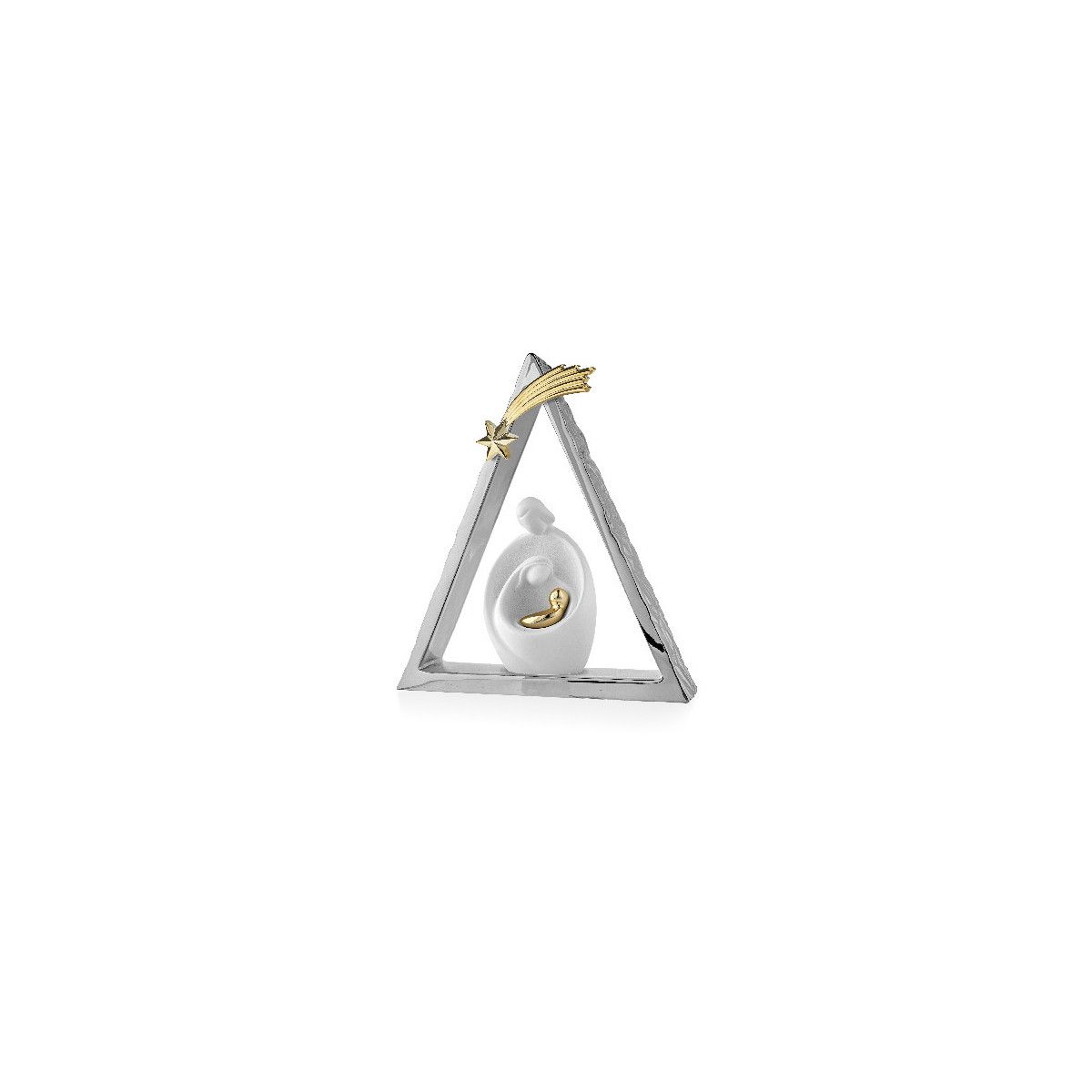 Pesebre Navidad Cerámica 12.5x15cm MA3397/MB Triangular Plateado Bicolor Blanco Estrella Dorada. Pesebre de navidad fabricado en cerámica. Diseño triangular plateado bicolor blanco estrella dorada. Tamaño: 12.5x15 cm. Certificado de autenticidad y garantía de calidad en los materiales de fabricación. Ref MA3397/MB