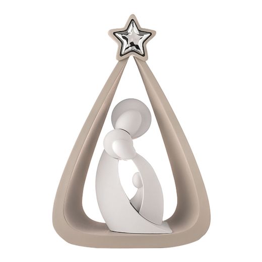 Pesebre Navidad Cerámica 17cm NT142/1N Beige Bicolor Blanco Estrella Plateada