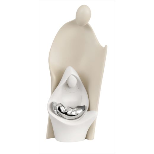 Pesebre Navidad Cerámica 26cm NT92/2N Estilizado Beige Tricolor Blanco/Plateado