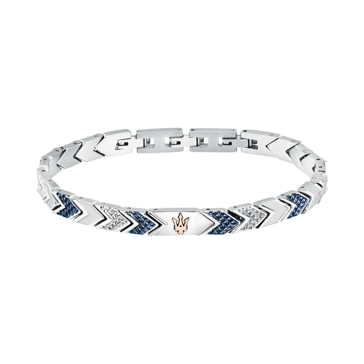 Pulsera Acero Maserati Hombre JM225AVD88 Iconic Plateado Bicolor Azul Tridente Maserati