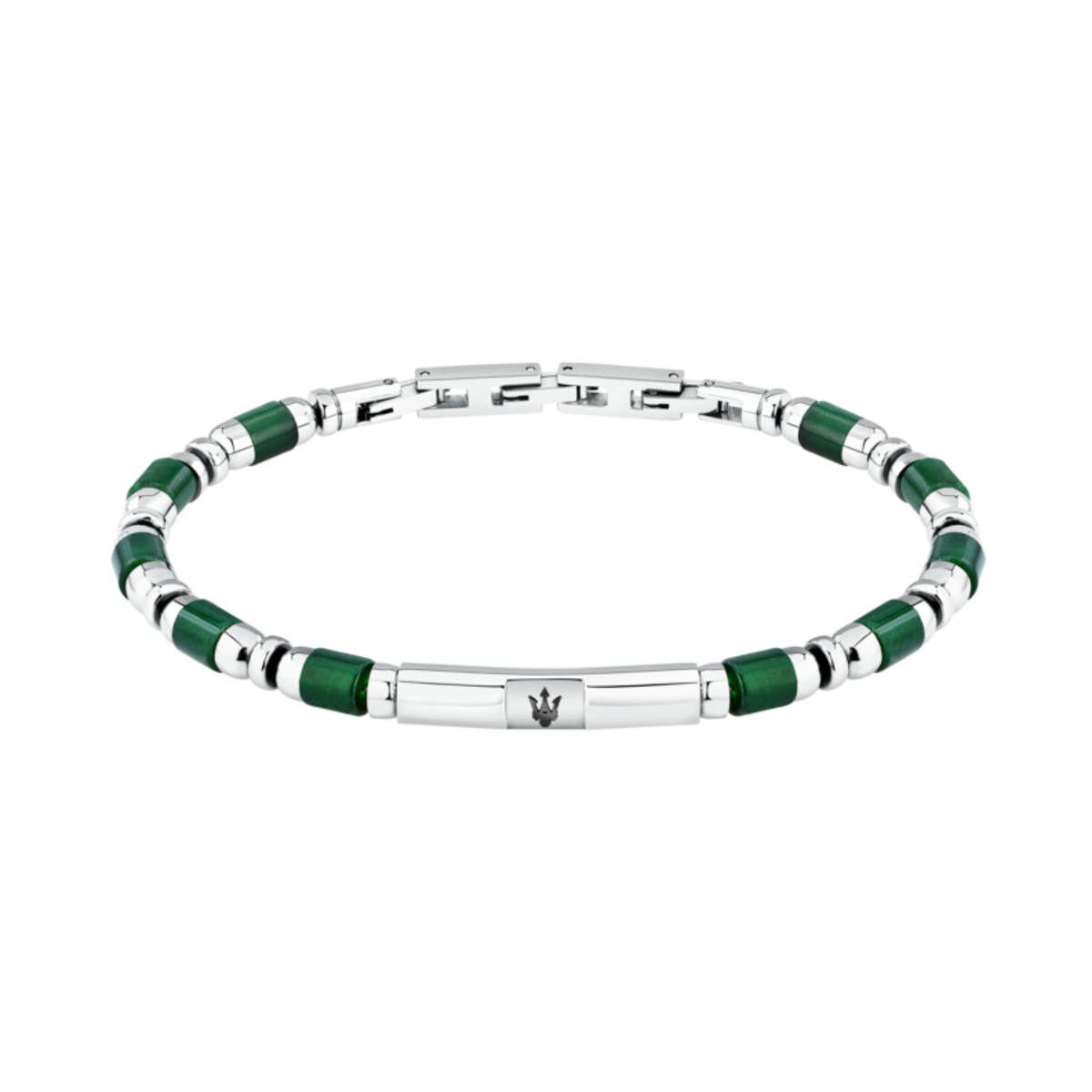 Pulsera Acero Maserati Hombre JM334AVD48 Iconic Eslabones Plateado Bicolor Verde Tridente Maserati