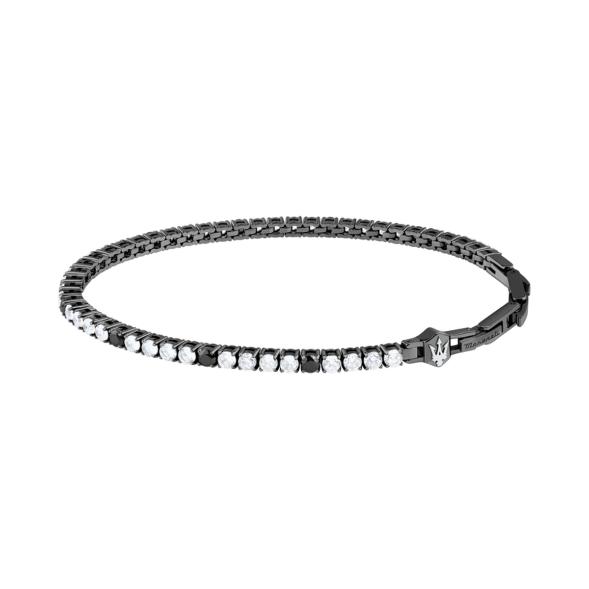 Pulsera Acero Maserati Hombre JM425AVC09 Tennis Eslabones Negros Circonitas Blancas Tridente Maserati