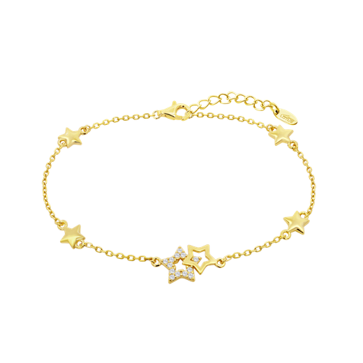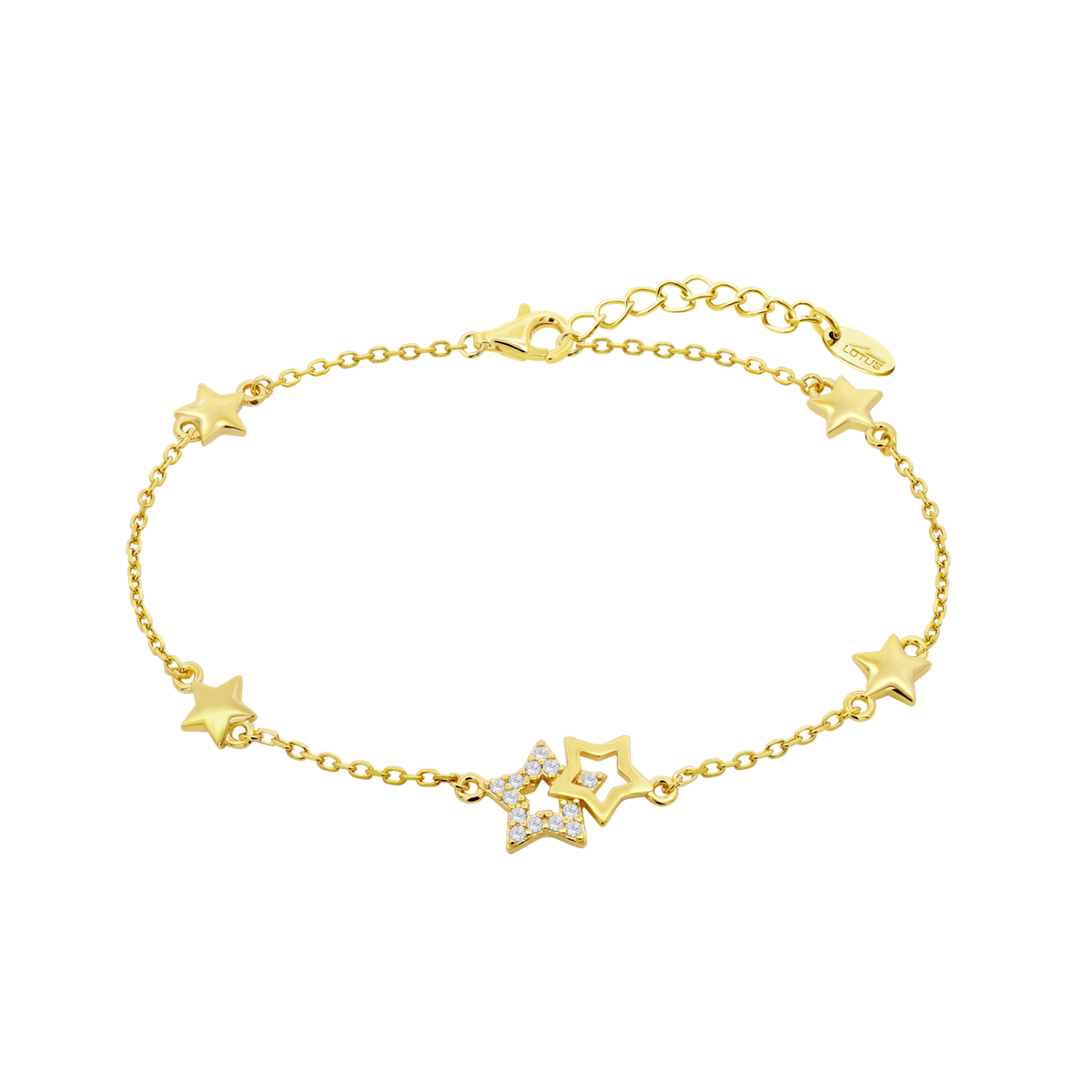 Pulsera Plata Dorada Lotus LP3177-2/2 Estrellas Circonitas Unidas. Pulsera fabricada en plata de ley 925. Diseño de estrellas con circonitas unidas. Peso 2,60gr. Medida de 16-18cm. Cierre mosquetón. Certificado de autenticidad y garantía de calidad en los materiales de fabricación. Ref LP3177-2/2