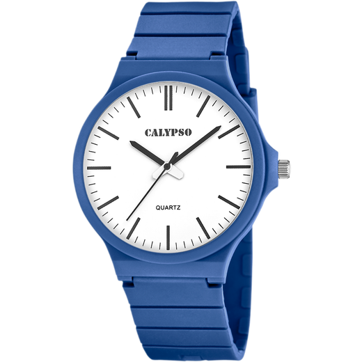 Reloj Calypso Hombre K5879/1 Sport Azul Analógico. Caja de plástico azul de 42,1mm de diámetro. Bisel azul. Correa de silicón azul. Cierre hebilla. Esfera blanca. Cristal mineral. Movimiento quartz. Sumergible 50m. 3 años de garantía. Ref K5879/1