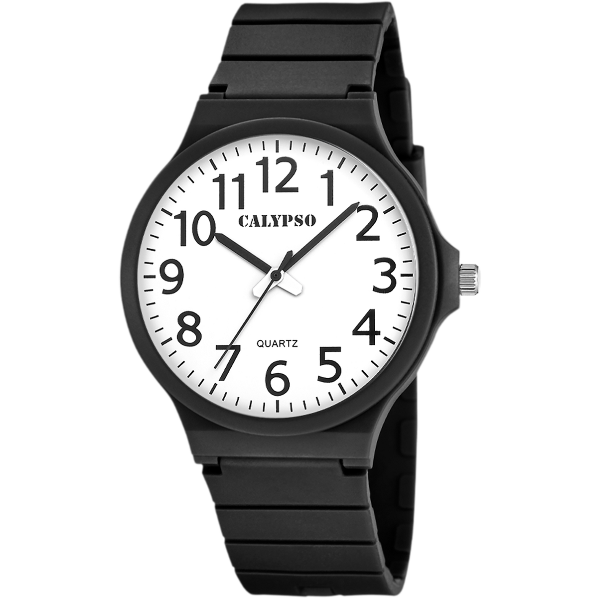 Reloj Calypso Hombre K5879/4 Sport Negro Analógico. Caja de plástico negro de 42,1mm de diámetro. Bisel negro. Correa de silicón negro. Cierre hebilla. Esfera blanca. Cristal mineral. Movimiento quartz. Sumergible 50m. 3 años de garantía. Ref K5879/4