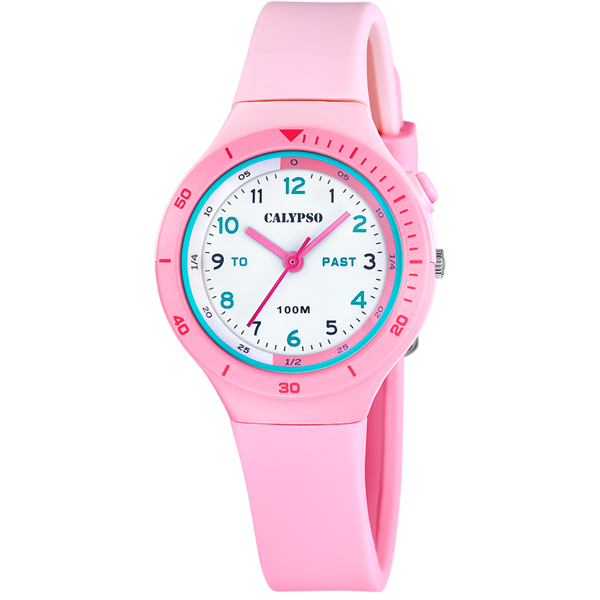 Reloj Calypso Infantil K5882/1 Sport Rosa Analógico. Caja de plástico rosa de 38,1mm de diámetro. Bisel rosa. Correa de silicón rosa. Cierre hebilla. Esfera blanca. Cristal mineral. Movimiento quartz. Sumergible 100m. 3 años de garantía. Ref K5882/1