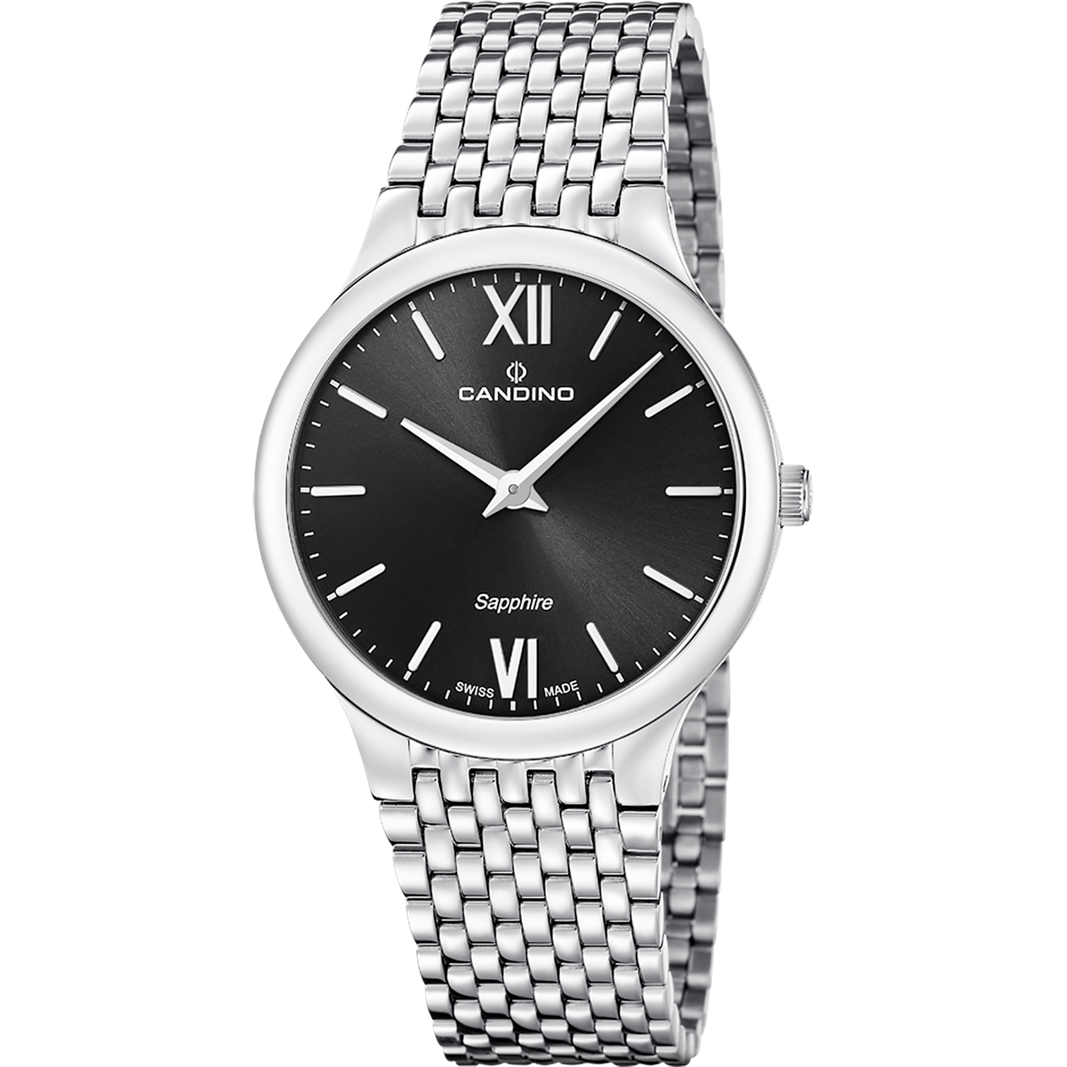 Reloj Candino Hombre C4786/4 Acero Analógico. Caja de acero de 39mm de diámetro. Bisel plateado. Brazalete de acero inoxidable plateado. Cierre oculto. Esfera negra. Cristal zafiro. Movimiento quartz. Swiss Made. Sumergible 50m. Peso 91gr. 3 años de garantía. Ref C4786/4