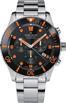 Reloj Claude Bernard Hombre 10252 3NOM NNO Swiss Made Cronógrafo Acero Analógico. Caja de acero de 43mm de diámetro. Bisel giratorio negro bicolor naranja. Brazalete de acero inoxidable. Esfera negra. Multifunción, calendario y cronógrafo. Cristal zafiro. Movimiento quartz. Swiss made. Sumergible 200m. Peso 87gr. 3 años de garantía. Ref 10252 3NOM NNO
