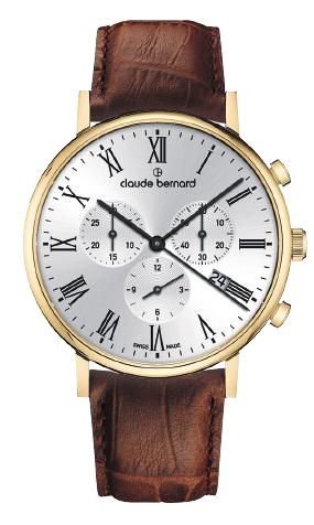 Reloj Claude Bernard Hombre 10258 37J AR Swiss Made Piel Marrón Cronógrafo Acero Dorado Analógico