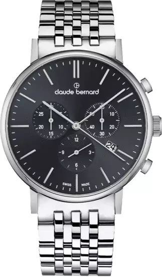 Reloj Claude Bernard Hombre 10261 3M NIN Swiss Made Cronógrafo Acero Analógico. Caja de acero de 40mm de diámetro. Bisel plateado. Brazalete de acero inoxidable. Esfera negra. Multifunción, calendario y cronógrafo. Cristal zafiro. Movimiento quartz. Swiss made. Sumergible 30m. Peso 119gr. 3 años de garantía. Ref 10261 3M NIN
