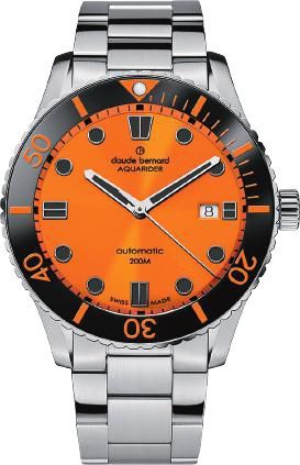 Reloj Claude Bernard Hombre 80129 3NOM OIN Acero Automático. Caja de acero de 43mm de diámetro. Bisel giratorio negro bicolor naranja. Brazalete de acero inoxidable. Cierre desplegable. Esfera naranja. Multifunción, calendario. Cristal zafiro. Movimiento automático. Peso 175gr. Swiss made. Sumergible 200m. 3 años de garantía. Ref 80129 3NOM OIN