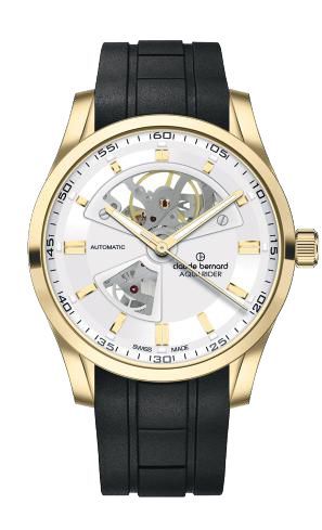 Reloj Claude Bernard Hombre 85030 37JCA AID Sport Negro Acero Dorado Automático. Caja de acero dorado de 42mm de diámetro. Bisel dorado. Correa de silicón negro. Cierre desplegable. Esfera blanca con mecanismo abierto. Índices y agujas doradas. Multifunción, calendario. Cristal zafiro. Movimiento automático. Swiss made. Sumergible 200m. 3 años de garantía. Ref 85030 37JCA AID