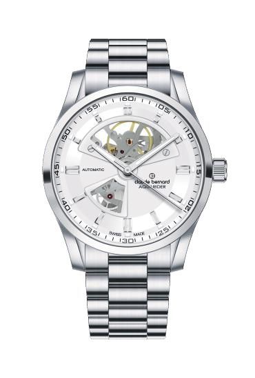 Reloj Claude Bernard Hombre 85030 3M AIN Acero Automático. Caja de acero de 42mm de diámetro. Bisel plateado. Brazalete de acero inoxidable. Cierre desplegable. Esfera blanca con mecanismo abierto. Multifunción, calendario. Cristal zafiro. Movimiento automático. Swiss made. Sumergible 200m. 3 años de garantía. Ref 85030 3M AIN