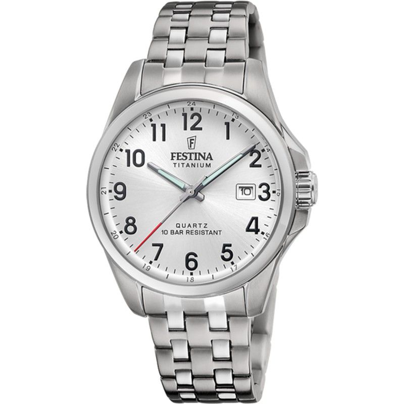 Reloj Festina Hombre F20696/1 Titanio. Caja de Titanio de 41mm. Bisel de titanio. Brazalete de Titanio. Cierre desplegable. Esfera plateada. Multifunción, calendario. Cristal mineral. Movimiento quartz. Sumergible 100m. 3 años de garantía. Ref F20696/1