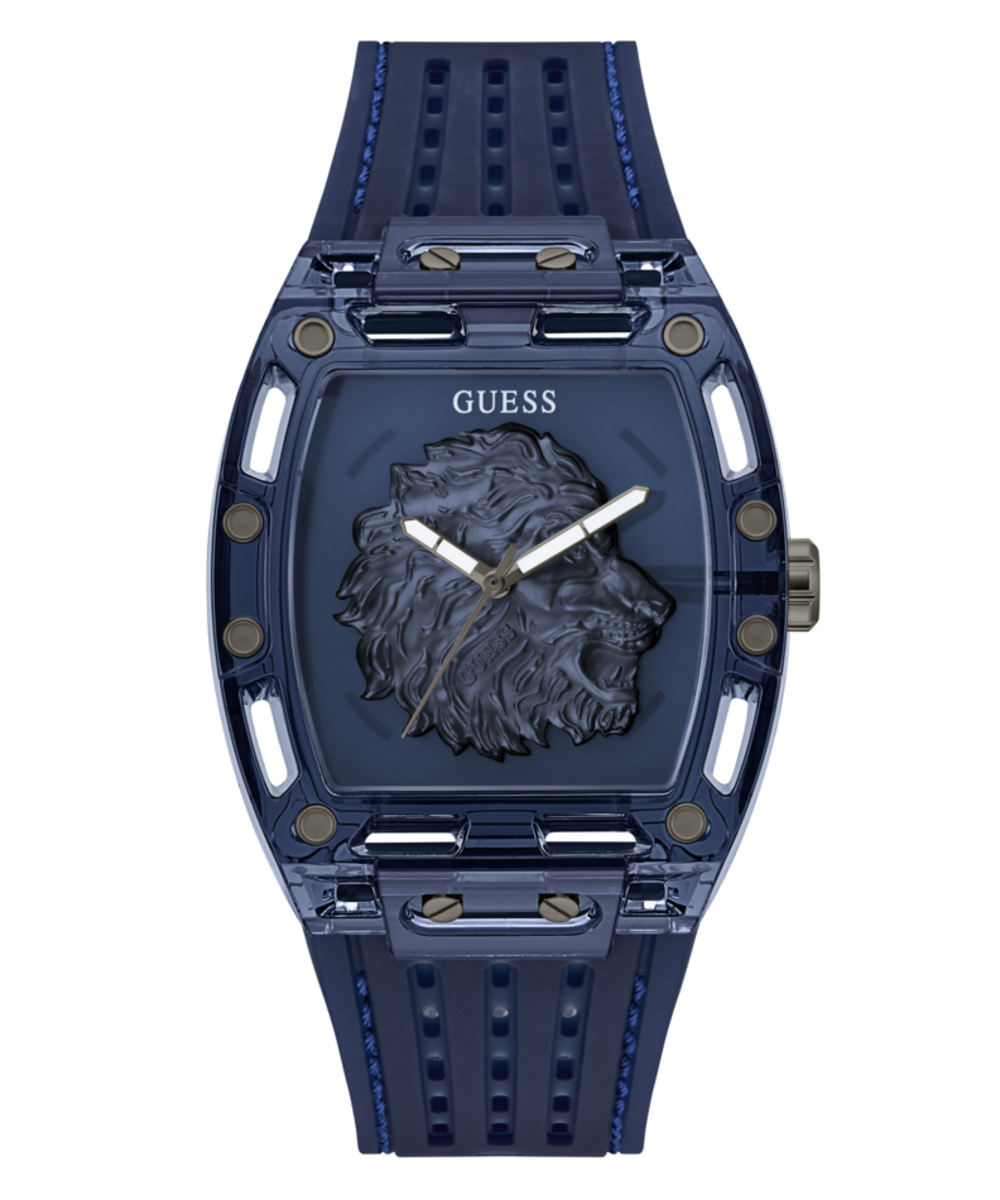 Reloj Guess Hombre GW0959G1 Phoenix Acero Azul Analógico. Caja de acero azul de 53mm de diámetro. Bisel azul. Correa de silicón azul. Cierre hebilla. Esfera azul. Cristal acrílico. Movimiento quartz. Sumergible 50m. 3 años de garantía. Ref GW0959G1