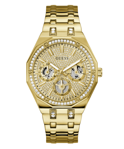 Reloj Guess Hombre GW0960G2 Kryptonite Acero Dorado Analógico. Caja de acero dorado de 43mm de diámetro. Bisel dorado. Brazalete de acero dorado. Cierre desplegable. Esfera dorada. Multifunción calendario, lumibrite en las manecillas, subesferas de 24 horas, de día y fecha. Cristal mineral. Movimiento quartz. Sumergible 50m. 3 años de garantía. Ref GW0960G2