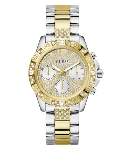 Reloj Guess Mujer GW0771L3 Acero Bicolor Dorado Analógico. Caja de acero bicolor dorado de 40mm de diámetro. Bisel dorado. Brazalete de acero inoxidable bicolor dorado. Cierre desplegable. Esfera dorada. Multifunción, calendario. Cristal mineral. Movimiento quartz. Sumergible 50m. 3 años de garantía. Ref GW0771L3