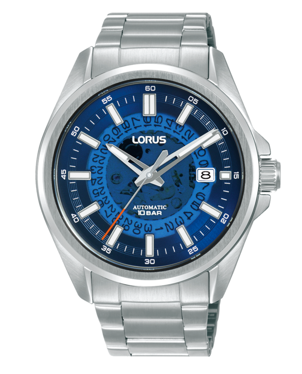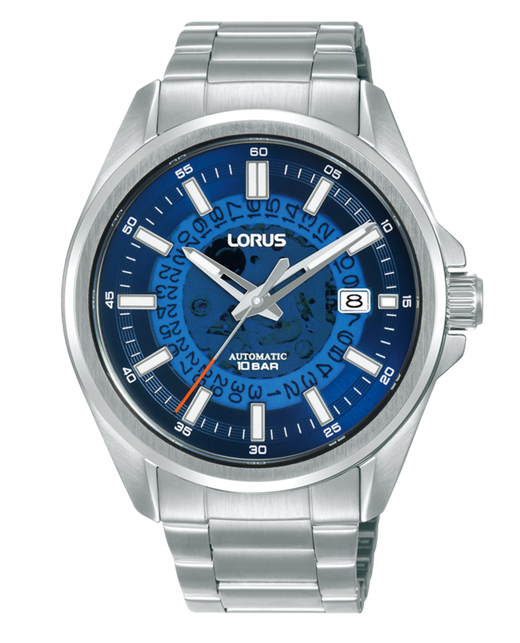 Reloj Lorus Hombre RU403AX9 Acero Automático. Caja de acero de 42mm. Brazalete de acero. Cierre desplegable. Esfera azul traslúcida. Multifunción calendario. Cristal mineral. Movimiento automático Y676. Sumergible 100m. 3 ańos de garantía. Ref RU403AX9