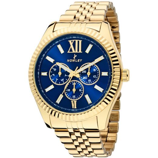 Reloj Nowley Hombre 8-0083-0-3 Acero Dorado Analógico. Caja de acero inoxidable dorada de 44x44x12mm. Bisel dorado. Brazalete de acero inoxidable dorado. Cierre desplegable de acero inoxidable. Esfera azul. Horas, minutos, segundos, calendario. Cristal mineral. Movimiento quartz. Sumergible 50m. 3 años de garantía. Ref 8-0083-0-3