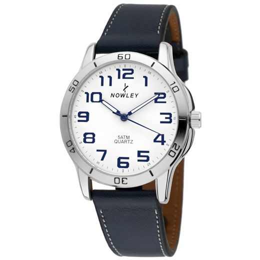 Reloj Nowley Hombre 8-7132-0-A3 Piel Azul Oscuro Analógico. Caja de acero inoxidable de 40x40x10mm. Bisel plateado. Brazalete de piel azul oscuro. Cierre de hebilla de acero inoxidable. Esfera blanca bicolor azul. Horas, minutos, segundos. Cristal mineral. Movimiento quartz. Sumergible 50m. 3 años de garantía. Ref 8-7132-0-A3