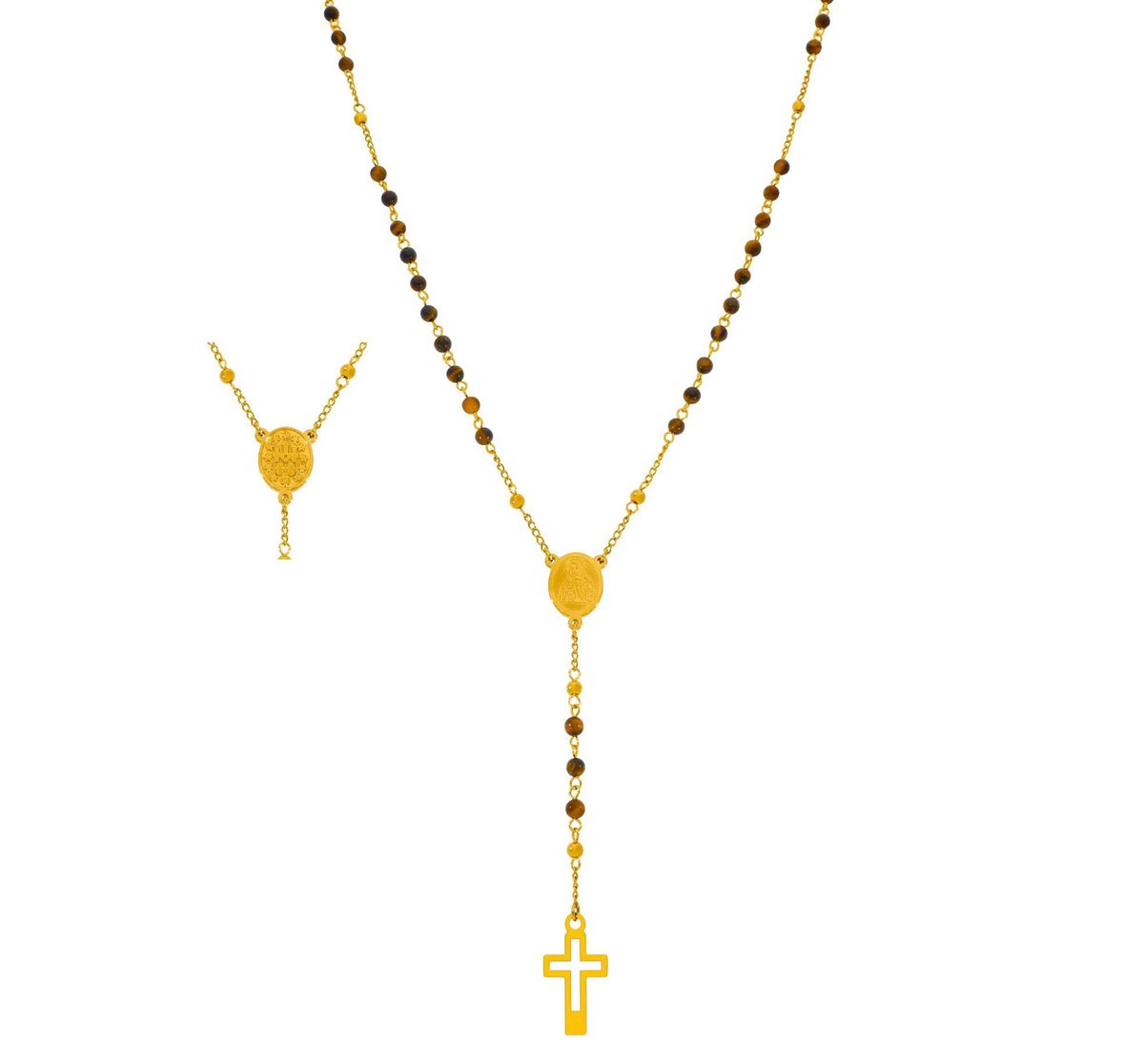 Rosario Acero Dorado Marea Mujer C03107/AP Piedras Naturales Ojo De Tigre. Rosario fabricado en acero inoxidable. Diseño de piedras naturales ojo de tigre. Certificado de autenticidad y garantía de calidad en los materiales de fabricación. Ref C03107/AP