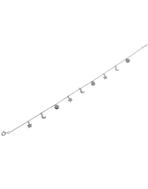 Tobillera Plata Mujer PTOB24 Estrellas Media Lunas Circonitas