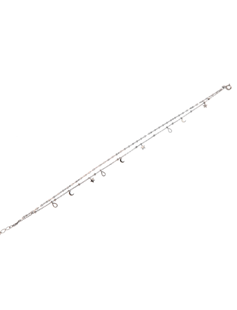 Tobillera Plata Mujer PTOB44 Cadena Doble Estrellas Media Lunas