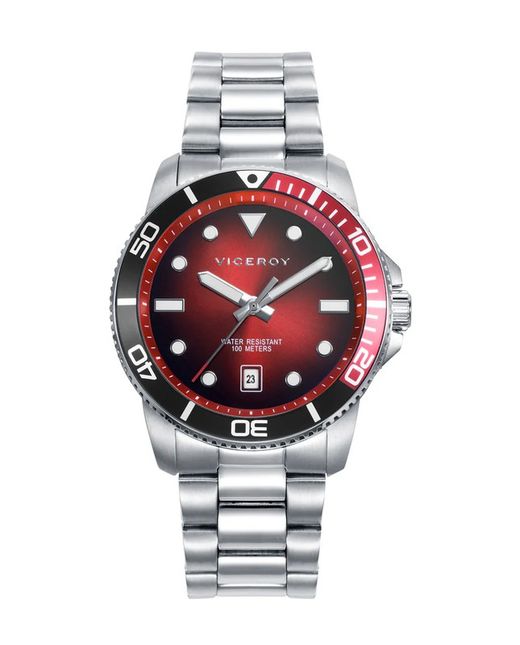 Viceroy herreur 42451-67 stål. 41 mm stålkasse. Tofarvet rød sort stålramme. Stål armbånd. Foldespænde. Rød skive falmer til sort. Multifunktion, kalender. Mineralsk krystal. Quartz værk. Nedsænkelig 100m. 3 års garanti. Ref. 42451-67